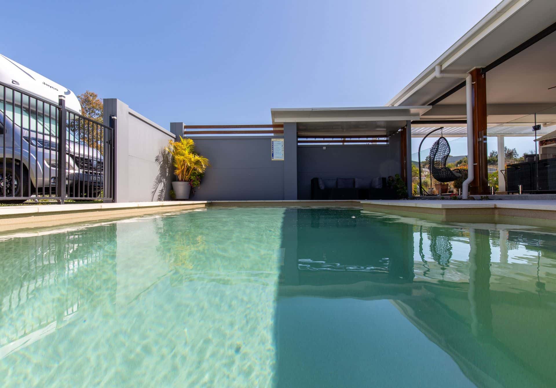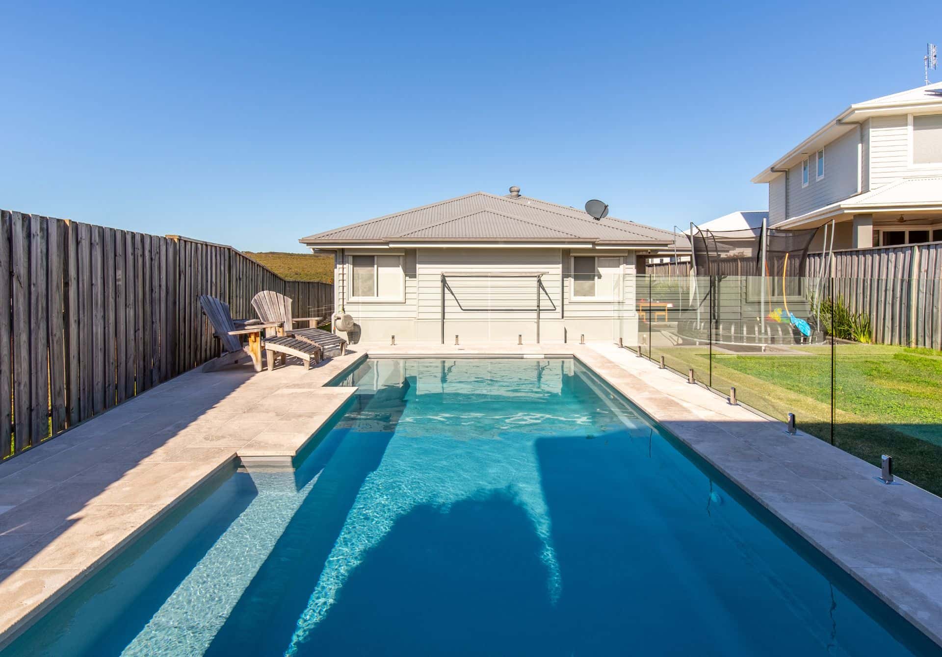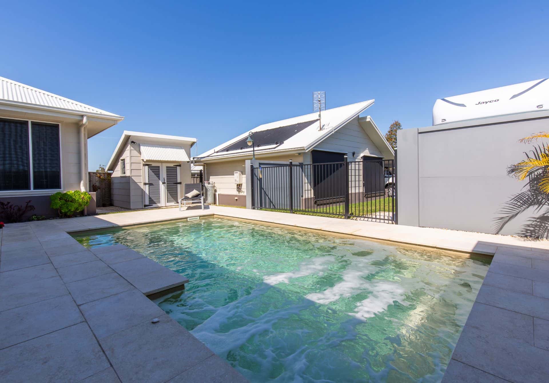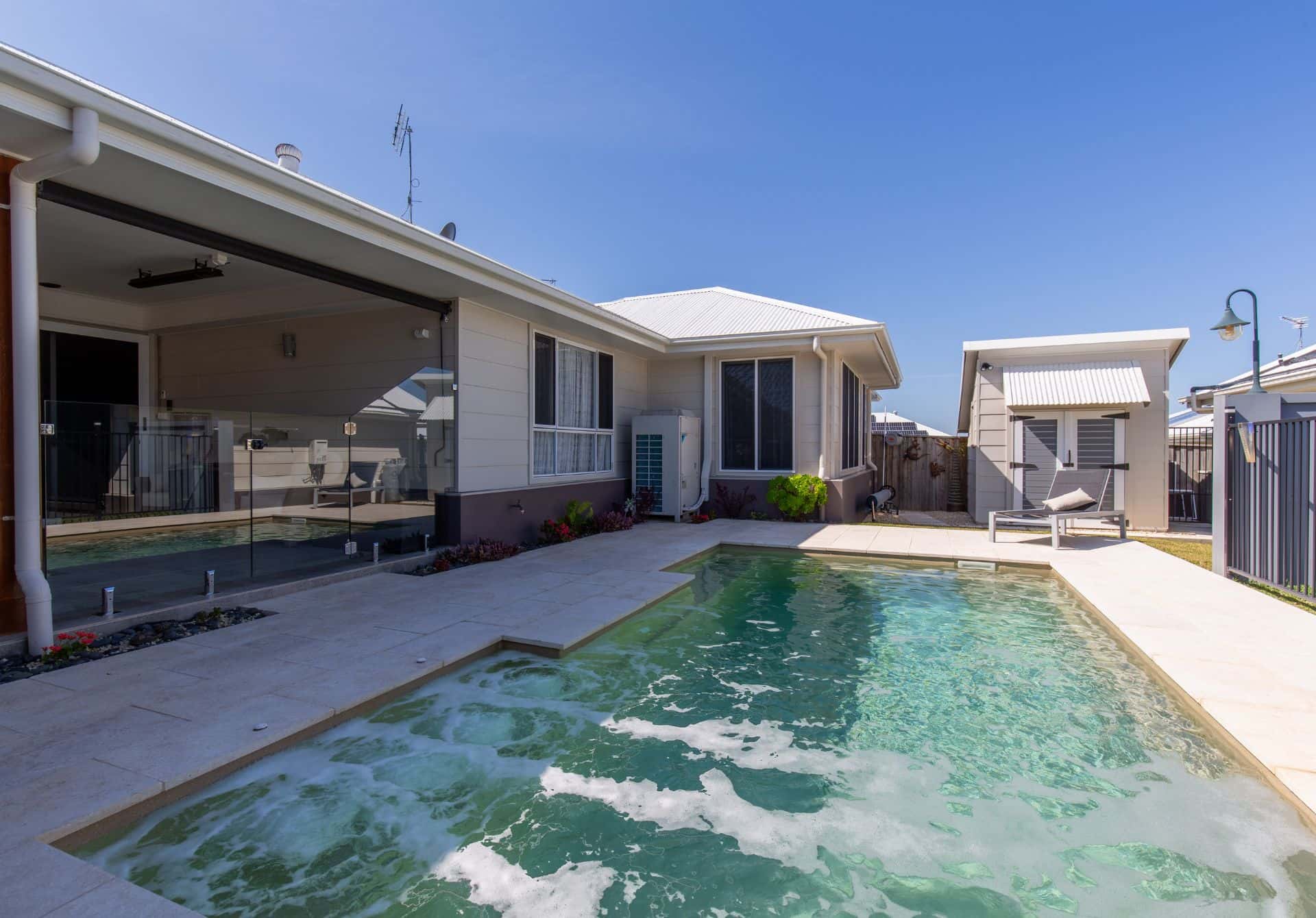 Multiple seating areas and a generous swim space make it ideal for long afternoons with family and friends